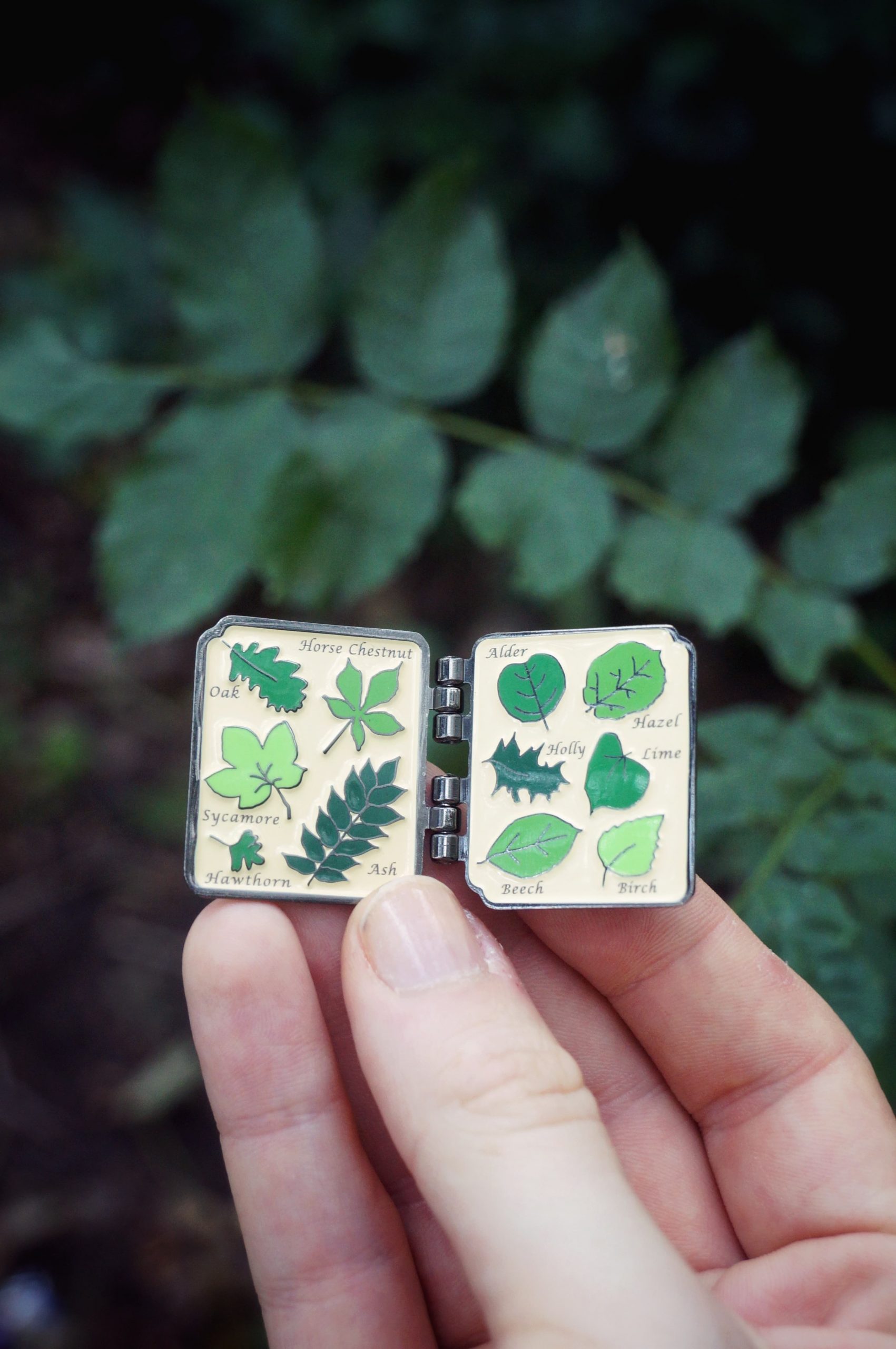 Discover the leaves of different UK tree species with this miniature guide in the form of a hinged enamel pin!